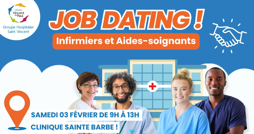 Le GHSV organise son tout premier JOB DATING dédié aux Infirmiers et Aides-soignants, le 03 février à la clinique Sainte Barbe !